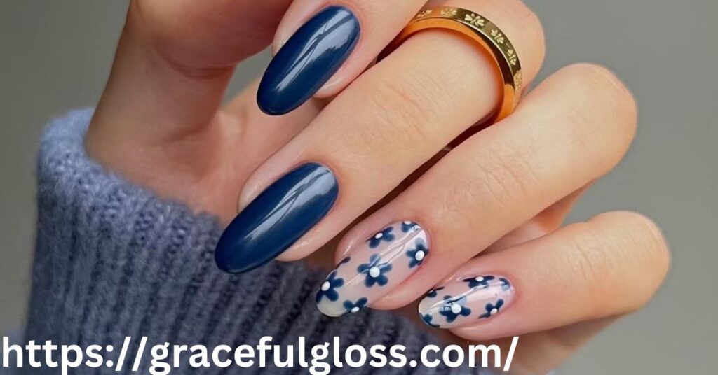 Definition: Dark blue nails paired with icy blue or silver accents for a frosty, winter-inspired look.